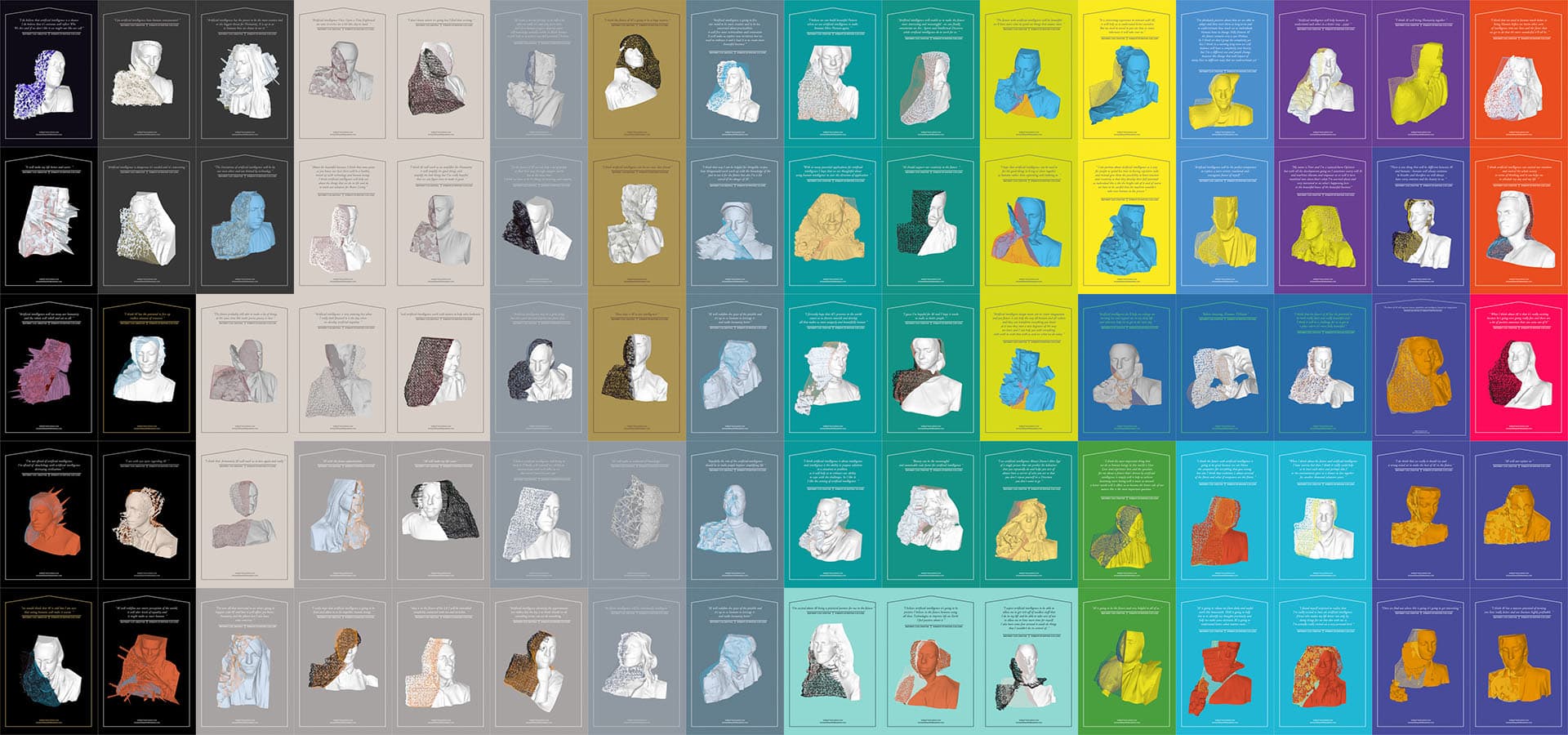 Exploring the distorting potential of emerging technologies using AI based data analysis and turning individual profiles into pieces of art. - Source : Indeed Innovation (http://www.indeed-innovation.com/case/indeed-installation)